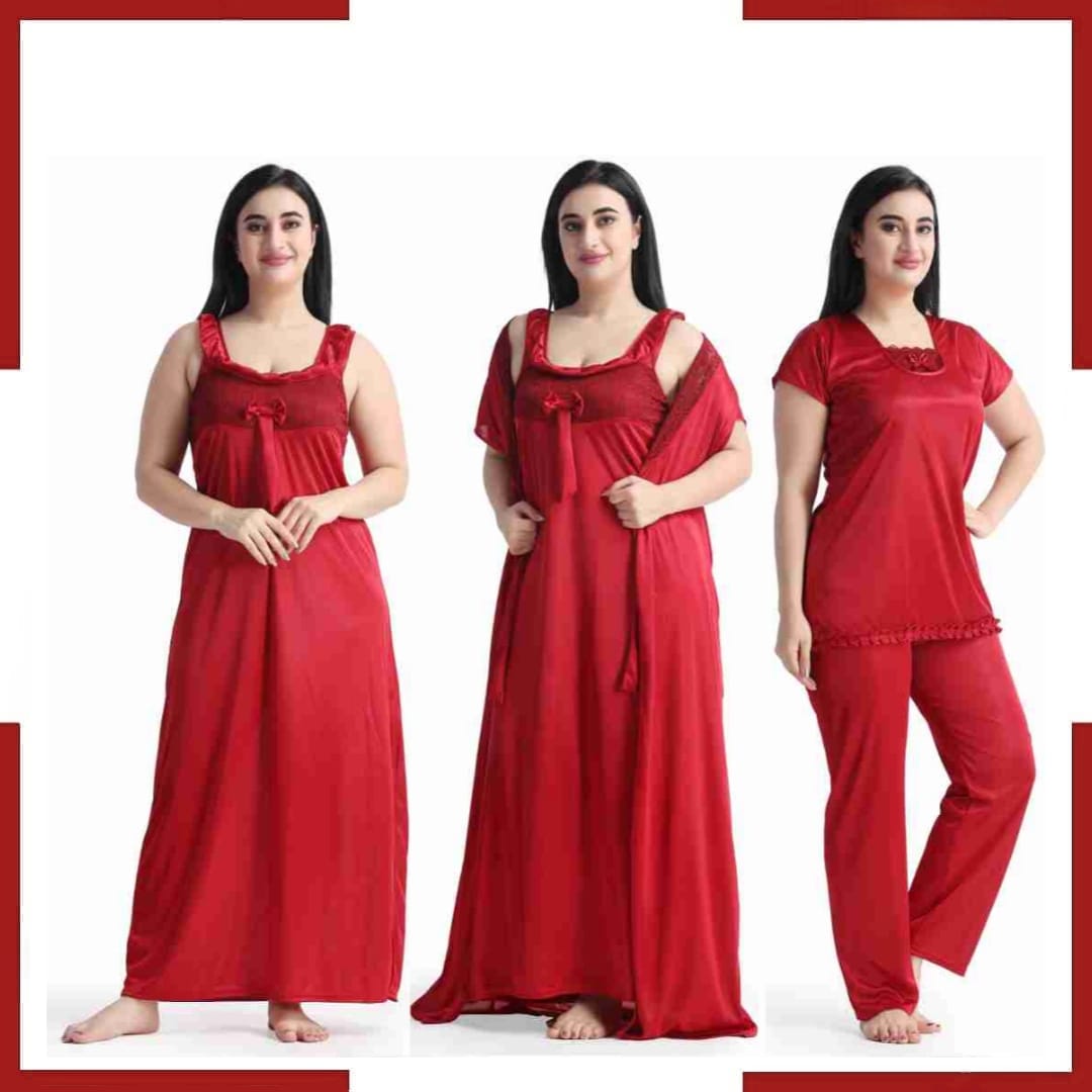 4 Part Pink Color Nighty