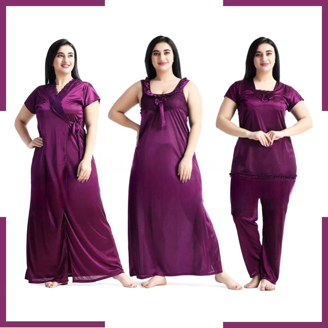 4 Part Maroon Color Nighty